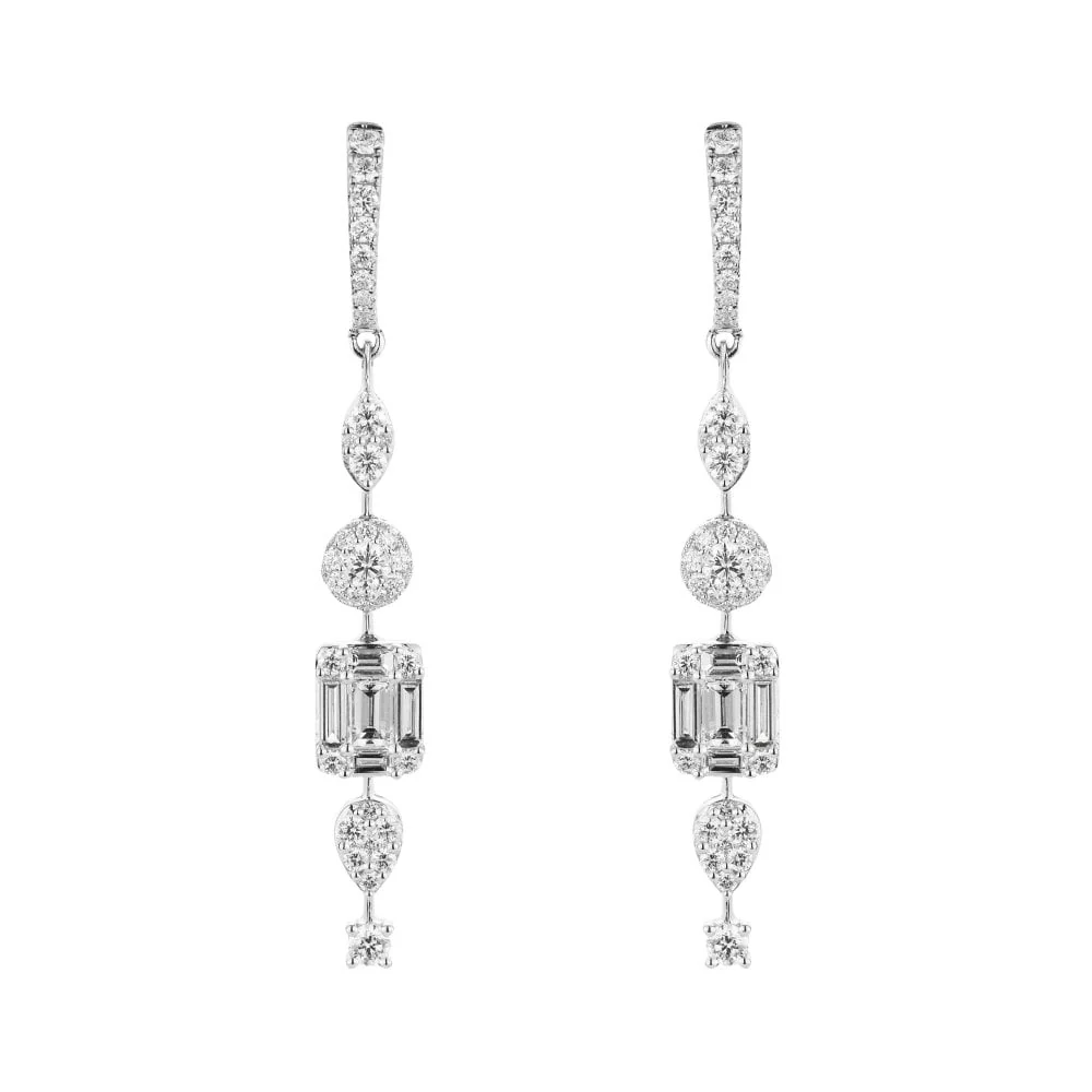 Buyers are increasingly drawn to expressive, fashion-forward designs. Not just simple studs — larger, sculptural, and dramatic diamond earrings (like elongated drops or chandelier styles) are trending for both everyday luxury and evening wear.